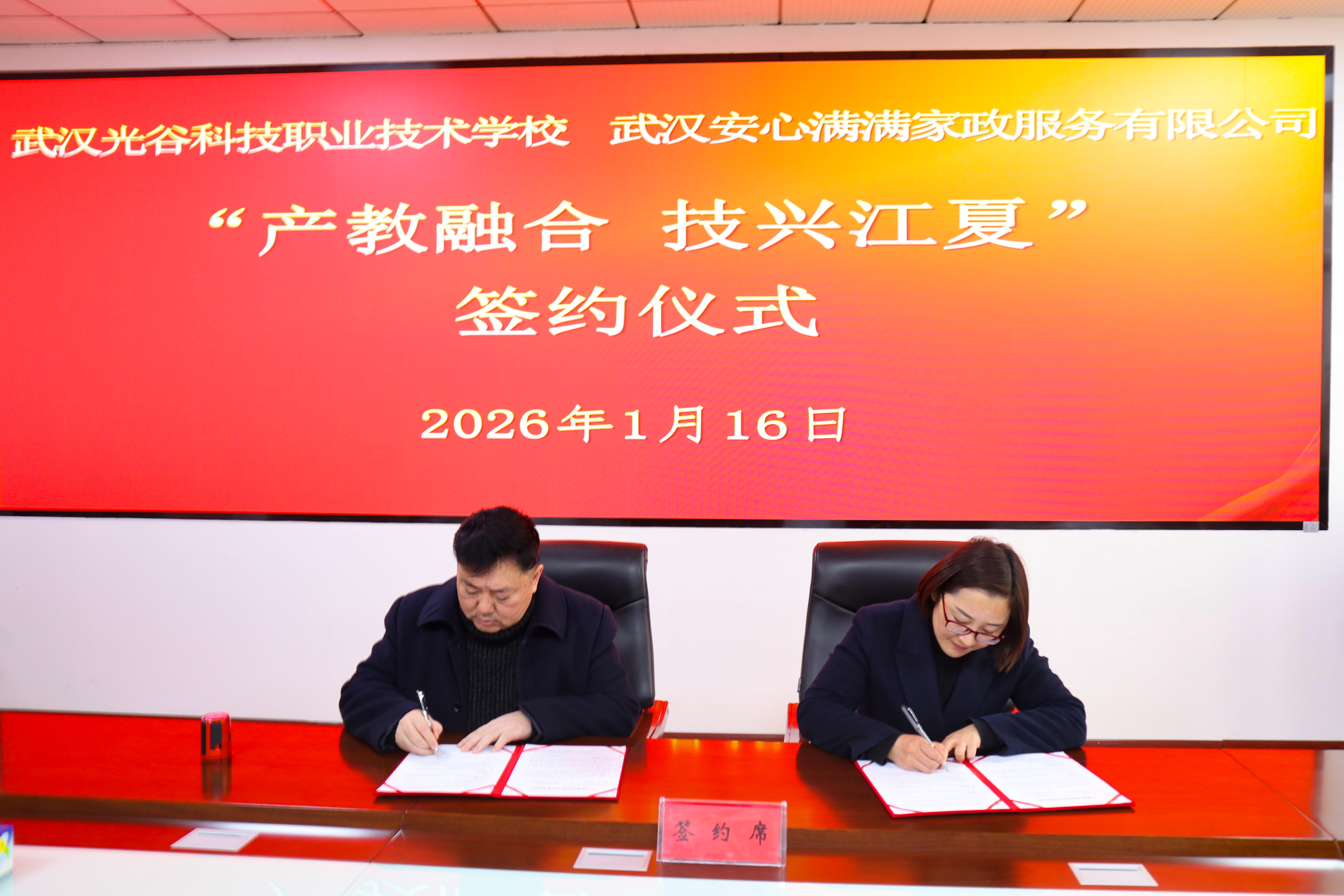 2026年1月16日上午,“产教融合 技兴江夏”交流座谈会暨校企合作签约仪式在武汉市江夏区人社局举行。活动由区人力资源和社会保障局牵头组织,武汉光谷科技职业技术学校与武汉安心满满家政服务有限公司双方代表齐聚一堂,围绕技能人才培养、校企合作模式等展开深入交流,并现场签署合作协议。区人社局党组成员、副局长、区产教融合工作专班责任组长舒建华出席并讲话。座谈会由区人社局四级调研员李义山主持。