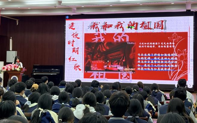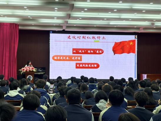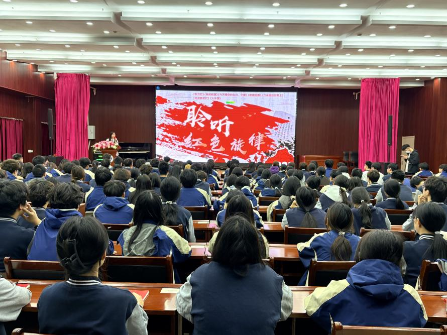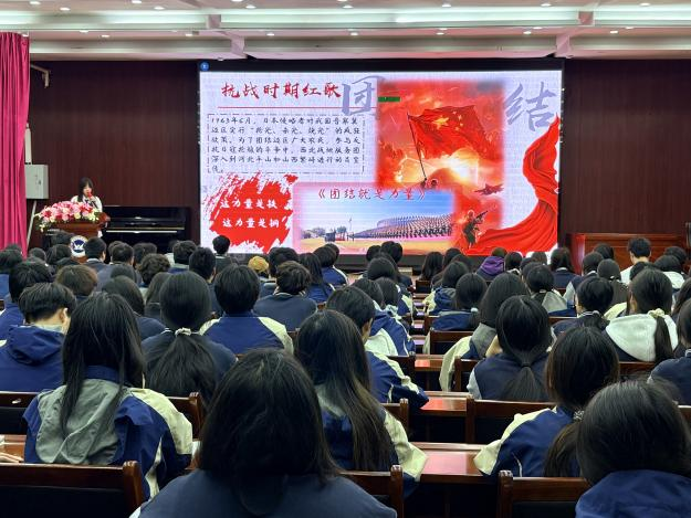 为加强入团积极分子的思想政治教育,厚植爱国主义情怀,2026年4月14日16时,我校团委组织开展了入团积极分子团课第七课。本次团课以“聆听红色旋律”为主题,由党员教师何林璇主讲。何老师发挥自身音乐专业优势,以音乐教师的独特视角,带领同学们穿越历史长河,在红色旋律中感悟信仰的力量。