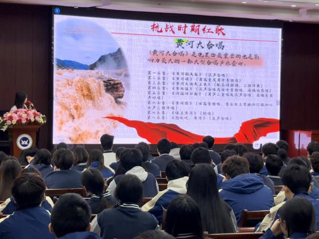 何老师以《松花江上》《义勇军进行曲》《团结就是力量》《游击队歌》《黄河大合唱》等经典作品为例,讲述了它们在民族危亡时刻所激发的战斗意志和爱国热情。特别是结合抗战胜利80周年阅兵仪式上《松花江上》作为开场曲目,深入剖析了其“勿忘国耻、缅怀先烈、珍爱和平、振兴中华”的深刻寓意。